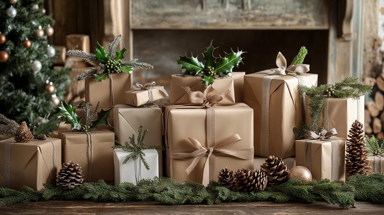 Pour accompagner ces cadeaux, les alternatives d'emballage zéro déchet remplacent avantageusement le papier cadeau traditionnel. Les tissus furoshiki, technique japonaise d'emballage en tissu réutilisable, transforment l'emballage lui-même en cadeau supplémentaire. Les bocaux en verre décorés, les boîtes en carton recyclé personnalisées ou les sacs en tissu cousus main ajoutent une dimension esthétique et écologique à la présentation des cadeaux.